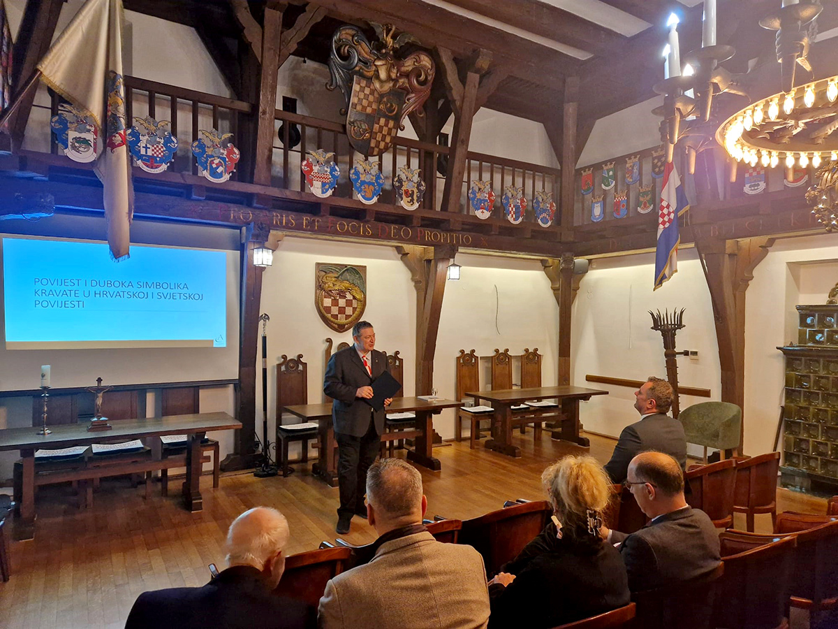 U Zmajskoj dvorani U Kuli nad Kamenitiim vratima u prostorima Družbe „Braća Hrvatskoga Zmaja” 25. veljače 2026. godine održano je predavanje pod naslovom „Povijest i duboka simbolika kravate u Hrvatskoj i svjetskoj povijesti“.