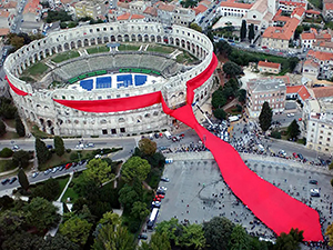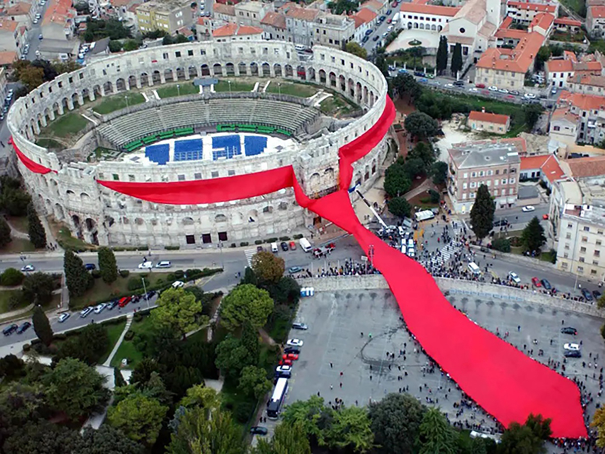 Godine 2003. oko Pulske Arene postavljena je monumentalna kravata, instalacija koja upućuje na kravatu kao kulturni fenomen europske baštine. Projekt je realizirala Academia Cravatica u sklopu svojega dugoročnog programa posvećenog istraživanju i promicanju simbolike kravate.